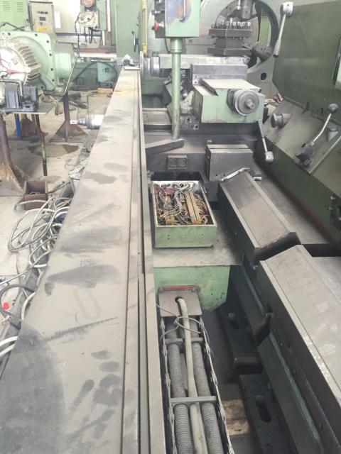SPECIFICATION | Conventional Heavy Duty Lathe POREBA Model: TCG 125 x 5000. Machine was designed by POREBA as a machine for special application for producing a barrel type roll for steel plant. That is the reason why it was equipped by producer with HEID ( Germany ) electrical template (electrical copying unit). That electrical template can be easily disassembled . HEAVY DUTY LATHE POREBA Model: TCG 125/5000 Manufacturer: POREBA New in: 1991 Condition: very good under power !!!! Location: our warehouse in Rudniki ? Poland Technical details: Capacities: Height of centres over the flat way: 625 mm Height of centres over the flat floor: 1225 mm Swing over bed: 1250 mm Swing over carriage: 940 mm Diameter of four-jaw chuck: 1250 mm Workholding range of the chuck min/max.: 230/1050 mm Distance between centres: 5000 mm Headstock: Spindle bore: 105 mm Spindle seat: cyl. 105 Diameter of the spindle in the front bearing: 320 mm Number of spindle speeds: 24 Overall range of spindle speeds: 1,6 - 315 rpm Spindle drive motor rating: kW 75 Maximum torque of the spindle: 63000 Nm Carriage: Width of the bed: 1100 mm Length of the saddle: 1320 mm Width of the cross slide: 550 mm Travel of cross slide: 800 mm Travel of tool slide: 600 mm Number of feed rates for each range: 20 Overall range of longitudinal feed rates: 0.18 - 160 mm/rev Range of longitudinal feed rates at: - high range of spindle speeds: 0.18 - 5 mm/rev - middle range of spindle speeds: 0.18 - 40 mm/rev - low range of spindle speeds: 0.72 - 160 mm/rev Overall range of metric threads: 1-192 mm Overall range of inch threads: 30 - 1/8 tpi Overall range of mm per min feed rates: 11.2 - 320 mm/min. Longitudinal rapid traverse: 4000 mm/min Rapid traverse motor rating: 4 kW Tailstock: Diameter of tailstock quill: 280 mm Diameter of tailstock spindle in front bearing: 170 mm Seat ( taper ) of tailstock centre: Cyl. 70 Travel of tailstock quill: 200 mm Rapid traverse of tailstock quill: 300 mm/min Rapid traverse of tailstock along the bed: 1500 mm/min Overall dimensions and weight: Length of the machine: 10700 mm Width of the lathe: 2200 mm Height of the lathe: 1930 mm Load carrying capacity in the chuck while the distance of gravity centre from the face of the chuck is equal to 350 mm: 4 t Load carrying capacity between centres - without steadies 30 t - with one steady 35 t - with two steadies 40 t Weight of the machine: 38 t This Machine is in working condition. Location: Rudniki in Poland. Delivery time: immediately | |||