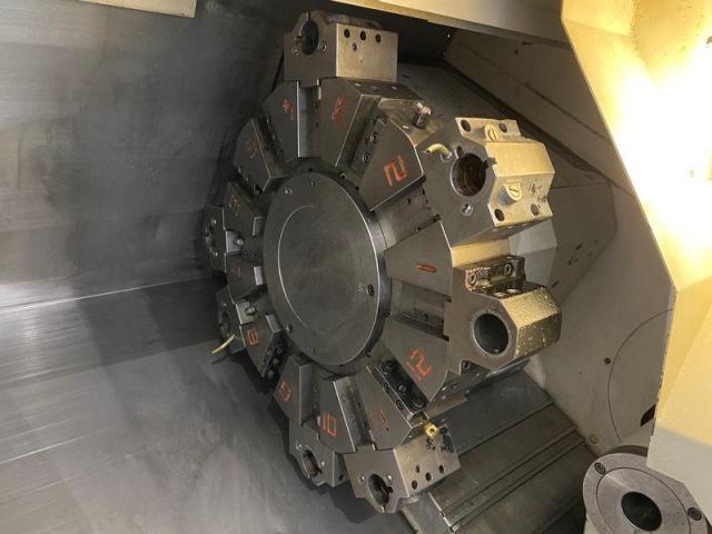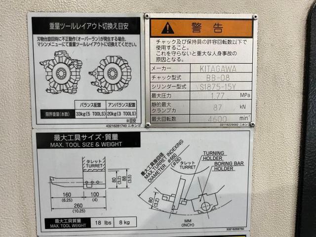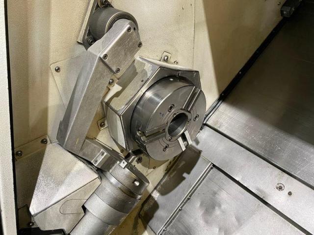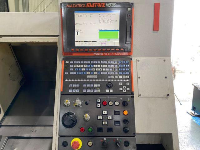 SPECIFICATION | Controller : MAZATROL MATRIX NEXUS Maximum swing : φ610 mm Swing on carriage : φ350 mm Max. work diameter : 350 mm Max. work length : 514 mm Travel X : 190 Z : 535 mm Spindle maximum speed : 5,000rpm Through-spindle hole diameter : φ76 mm Tool rest type: 12-sided drum Travel of tail stock : 550 mm Tail stockTapered hole: MT 4 Required floor surface : 2,426× 1,780 mm Machine height : 1,840 mm Machine weight : 4,800 kg 8-inch hollow chuck BB-08 (Kitagawa) Tool Eye (automatic) Coolant system Power coolant (1.1 kW) Fully automatic tailstock 3-stage signal tower USB I/F (2 ports) Equipped with MAZA-CARE system EIA/ISO code input Relocation detection device | |||