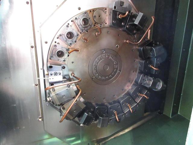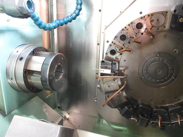 Standard workpiece: φ50*80 Milling unit Rotation speed: Z-direction unit Max 5000min-1, X-direction unit Max 10,000min-1 Number of tooling: 18 NC: FANUC-18i-TB Chip conveyor with automatic feed