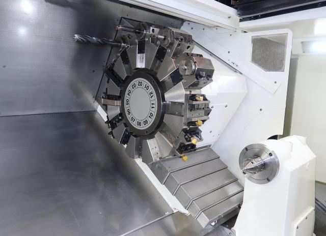 SPECIFICATION | Control: MAZATROL Smooth G Chuck: 15”Hollow (Kitagawa B-15)、Turret: V12 Max. Swing: φ720、 Between center:1250 Max.Turning Dia. ×Length: φ420×1234 Travel:ZX: 1305x240 Tailstock Travel: 1265 Spindle speed: 3300rpm、 Spindle through hole: φ112 ・Automatic Tool pre-setter ・Powerful coolant (1.1kw) ・NC Tailstock ・Relocation detecting device ・No-Chip-conveyor | |||