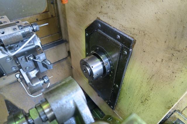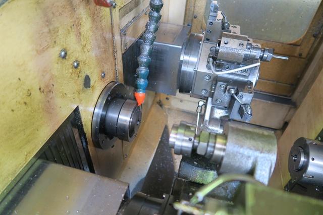 F-18i-TB Max machining diameter: φ38 Machining length: 125 Hole diameter: φ16 Tapper diameter: M12 Spindle: 6000 rpm Index: 5° Tool rest: 8 faces * 2 Back spindle: 6000 rpm Index 5° Bar Feeder: IEMCA Chip conveyor Dust Collector