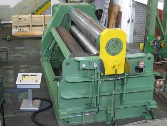 SPECIFICATION | HYDRAULIC 4-ROLL PLATE BENDING MACHINE Year: 2011 (Retrofitted in Year 2022) Model: VRM-HY 4000 x 35/30 Max. width of plate: 4,000mm Thickness of plate at max. yield point of 240N/mm2 For edge setting at max. width of plate: 30mm at bending-Ø1,250mm at rounding: 35mm at bending- Ø1,250mm Prebending length at s= 30mm X=3xs Roll diameter-top and bottom roll: 570/540mm Roll diameter-side rolls: 450mm Smallest bending diameter: 650mm Number of rolls: 4 Roll material: 61 MnCrMo 43Driven rolls: 2 Top-and bottom roll Drive: over 2 hydro motors direct flanged Working speed: 4 m/min Adjustment speed bottom roll: 0-200 mm/min Adjustment speed side rolls: 0-700 mm/min Speed compensation between top-and bottom roll: automatic Power: 60kW Operation of the tilting bearing: hydraulic Tilting of the top roll: hydraulic Bearing block: hydraulic Working voltage: 380V/50Hz/3Ph Indicator device of roll position: digital Weight of machine: approx.: 52tons | |||