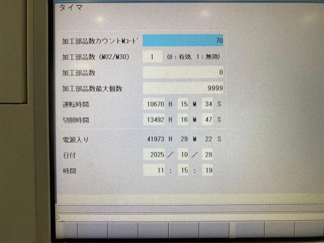 SPECIFICATION | Control : MELDAS M730BM Table size : 1,100 x 600 mm Max. load capacity : 1,000 kg Travel X : 800 Y : 530 Z : 510 mm Distance from spindle end to nose : 150~660 mm Spindle speed : 13,000 rpm Tool shank : BBT40 (BIG Plus) MAS1 ATC : 30 stations Required floor space : 3,314×3,613 mm Machine height : 2,597 mm Machine weight : 6,400 kg In-machine coil conveyors (two, left and right) Scraper-type chip conveyor (rear discharge, left) Tool length compensation and tool breakage detection Touch sensor (Renishaw OMP60) MAPPS IV Program memory capacity: 600m Number of registered programs: 400 Custom macro common variables: 200 Coordinate rotation Relocation detection function | |||