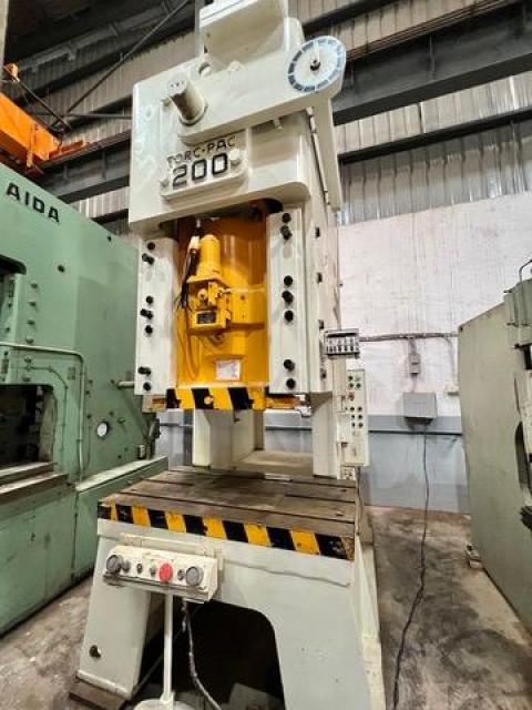 SPECIFICATION | Cap : 200Tons Stroke : 200mm Die Height : 340mm Adjustment : 100mm SPM : 40 Slide : 650 x 600mm Bolster : 1450 x 800mm | |||