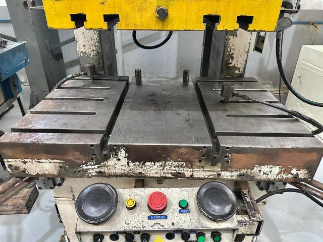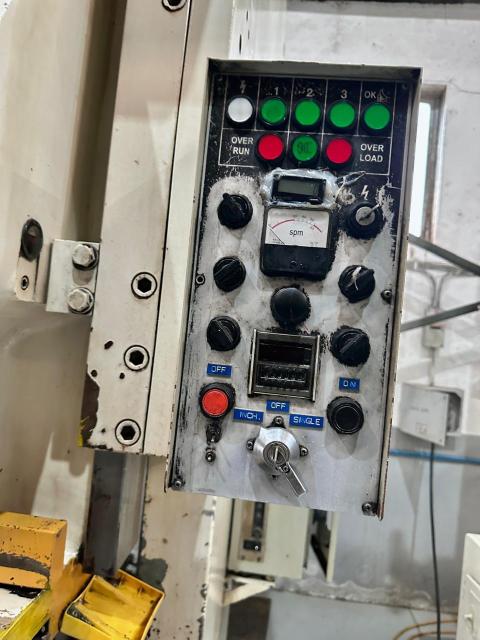 SPECIFICATION | Cap : 150Tons Stroke : 200mm Die Height : 400mm Adjustment : 100mm-Electrical SPM : 30~55 Slide : 700 x 580mm Bolster : 1170 x 760mm | |||