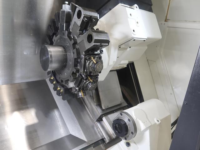 SPECIFICATION | Control: OSP-P300L(Advanced One-touch IGF) Chuck: 8”Hollow(Kitagawa BB-208A)、NC Turret: V12 Swing over bed: φ580、 Distance between center: 470 Max.Turning Dia.×length: φ340×450 Spindle speed: 4500min、 Spindle through hole: φ80 Milling spindle: 6000min Travel:XYZC: 260x120x510x360° ・NC Tailstock ・Tool pre-setter(Manual) ・Mist collector ・Door interlock(Type Ⅱ) ・Chip-conveyor * Gear Hobbing Unit( SUHNER (SU-matic) | |||