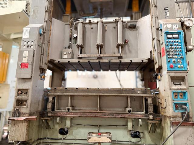 SPECIFICATION | H FRAME DOUBLE CRANK PRESS Cap : 350Tons Stroke : 450mm Die Height : 850mm Adjustment : 450mm-Electrical SPM : 15~25 Slide : 2450x 1200mm Bolster : 2450x 1350mm Window Size : 1300 x 680mm (h) Accessories : With Die Cushion & Moving Bolster Pad Are : 1900 x 800 C.D : 150 x 150 | |||