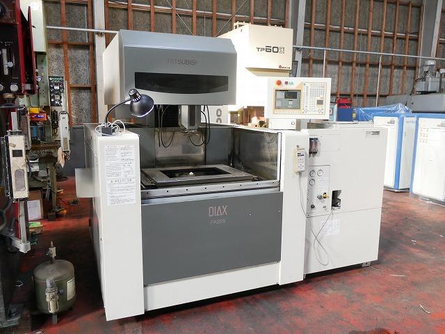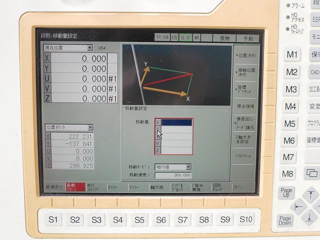 SPECIFICATION | ◆Controller: W21FAS-2 ◆Maximum workpiece dimensions (W * D * H): 1050 * 800 * 295 mm ◆Maximum workpiece weight: 1500 kg ◆Table dimensions: 780 * 630 mm ◆Axis travel (X * Y * Z): 500 * 350 * 300 mm ◆Table rapid feed speed: 1300 mm/min ◆Wire electrode diameter: 0.1 to 0.3 mm ◆Tapering device: Standard device ◆Axis travel (U * V): ±75 * ±75 mm ◆Maximum taper angle: 15° (for a plate thickness of 260 mm) (Note: This appears to be an error and should be omitted.) ◆Machine dimensions (W * D * H): 2013 * 2632 * 2100 mm ◆Weight: 3500 kg ◆Cutting fluid tank capacity: 740 L ◆Cutting fluid tank dimensions(W * D * H): 880 * 2085 * 1490 mm ◆Power supply unit (WFAS) ◆Power supply circuit: Transistor pulse circuit (stabilization circuit, AVR built-in) ◆Power supply dimensions (W * D * H): 550 * 600 * 1650 mm ✤In the event of any discrepancies between the specifications and the actual product, the actual product will take precedence. | |||