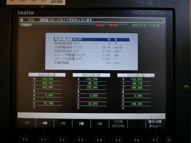 SPECIFICATION | ◆Controller: CNC-C00 ◆X-axis travel: 200 mm ◆Y-axis travel: 440 mm ◆Z-axis travel: 305 mm ◆A-axis travel: 5 to -95 degrees ◆C-axis travel: 360 degrees ◆Distance from table top to spindle end: 100 to 405 mm ◆Working surface size: Φ140 mm ◆Table top shape: ISO702-4 ◆Maximum load capacity: 40 kg ◆Maximum inertia: 0.32 kg/m2 ◆Spindle speed: 16,000 rpm n-1 specifications: 16 to 16,000 min-1 ◆ Spindle speed during tapping: Max. 6,000 min-1 ◆ Spindle taper hole: 7/24 taper No. 30 ◆ Maximum rotation speed: 2,000 min-1 ◆ Rapid traverse rate: X*Y*Z axes: 50*50*50 m/min ◆ Cutting feed rate: X, Y axes: 1 to 10,000 mm/min, Z axis: 1 to 20,000 mm/min ◆ Indexing speed: A×C axes: A axis: 60 mm, C axis: 200 min-1 ◆ Tool change rate Model: MAS-BT30 ◆Pull stud model: MAS-P30T-2 ◆Tool storage capacity: 22 ◆Maximum tool length: 200 mm ◆Maximum tool diameter: 80 mm ◆Maximum tool weight: 3 kg ◆Tool selection method: Random shortcut ◆Spindle motor (10 min/cont): 10,000 min-1 specification: 10.1/6.7 kW ◆Feed motors: X, Y axes: 1.0, Z axis: 1.8, A axis: 1.8 kW ◆Turning spindle motor: 4.2 kW ◆ Power Supply: AC200V±10%, 50/60Hz±1Hz ◆ Power Capacity (Continuous): 10,000 min-1, Specification: 9.5 kVA ◆ Air Pressure Source Operating Pressure: 0.4-0.6 MPa ◆ Air Pressure Source Required Flow Rate: 130 L/min ◆ Machine Height: 2,513 mm ◆ Floor Space Required: 1,280 * 3,641 mm (including chip conveyor) ◆ Machine Weight: 2,370 kg ◆Rear-Discharge Chip Conveyor ✤ In the event of any discrepancies between the specifications and the actual product, the actual product will take precedence. | |||