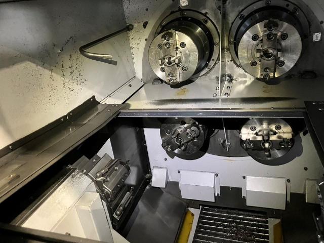 4-spindle 2turret Fanuc-0iTF Max work dia:200mm Length:100mm spindle bore:40mm 4,500rpm X:160 Z:250mm