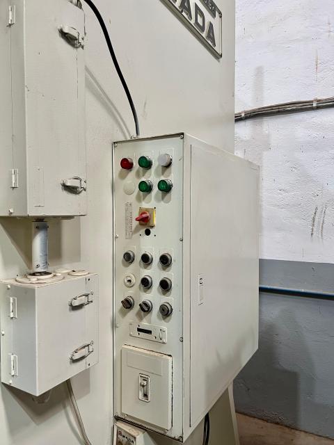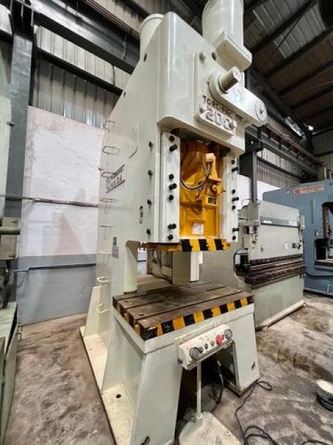 SPECIFICATION | ‘C’ FRAME SINGLE CRANK PRESS Cap : 200Tons Stroke : 200mm Die Height : 340mm Adjustment : 100mm SPM : 40 Slide : 650 x 600mm Bolster : 1450 x 800mm | |||
