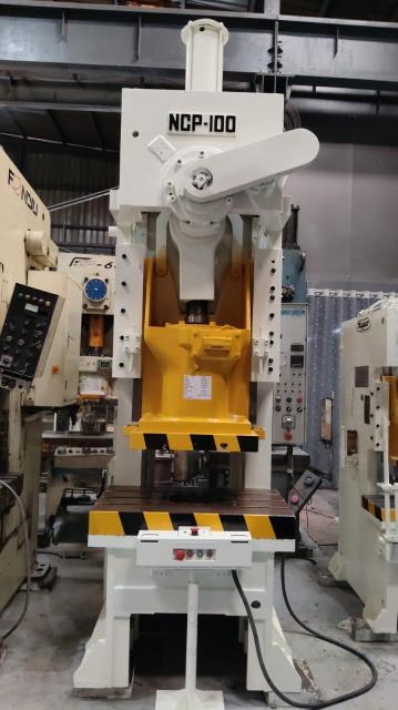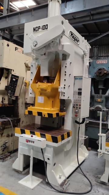 SPECIFICATION | ‘C’ FRAME SINGLE CRANK PRESS Cap : 100Tons Stroke : 180mm Die Height : 350mm Adjustment : 80mm-Electrical SPM : 45 Slide : 650 x 450mm Bolster : 1000 x 600 | |||