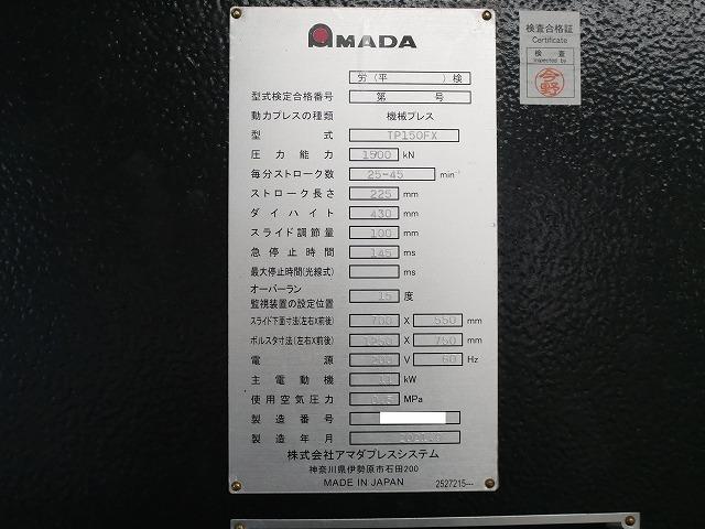 SPECIFICATION | ◆Menu: Throttle ◆Pressure Capacity (kN): 1500 ◆Stroke Length (mm): 225 ◆Power Generation Position (mm): 6.0 ◆Strokes per Minute (min-1): 25-45 ◆Flyhole Energy (kJ): 21.5-69.6 ◆Die Height (mm): 430 ◆Slide Adjustment (mm): 100 ◆Slide Bottom Dimensions (mm): 700 * 550 ◆Bolster Dimensions (mm): 1250 * 750 ◆Bolster Thickness (mm): 160 ◆Frame Gap (mm): 390 ◆Open Back Height (mm): 810 ◆Working surface height (mm): 900 ◆Main motor (kW * P): 11 * 4 ◆Die cushion capacity (kW): 95 ◆Die cushion stroke length (mm): 80 ◆Die cushion pad surface dimensions (mm): 510 * 345 ◆Total machine height (mm): 3435 ◆Machine weight (kg): 16000 ◆Slide adjustment: Electric ◆Lubrication method: Manual grease ◆Continuously variable speed: Inverter ◆Includes die cushion ✤If there are any discrepancies between the specifications and the actual product, the actual product will take precedence. | |||