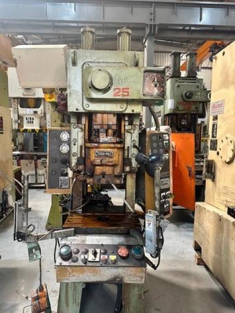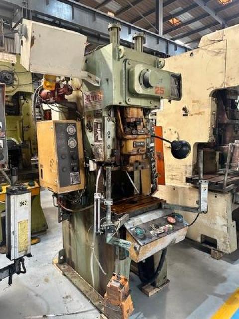 SPECIFICATION | Cap : 25Tons Stroke : 80mm Die Height : 220mm Adjustment : 50mm SPM : 120 Slide : 250x 200mm Bolster : 550x 300mm | |||