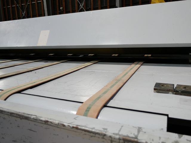 SPECIFICATION | ◆Motor Output: 3.7kW (5HP) ◆Machine Weight: 2500kg ◆Urethane Anvil: Hardness: 90°, Thickness: 7mm ◆Speed Control (Inverter Speed): 0-30m/min ◆Emergency Stop: Front and Rear, Mounted on Control Box ◆Start Method: Front and Rear, Foot Switch ◆Die Conveyor Belt: 2.5-inch Wide * 6 Belts ◆Urethane Surface Cleaning: Brush Device ◆Synchronization Method: Manual Push Handle with Square Screws ◆Effective Cutting Dimensions: Width: 2000mm, Depth Range: Approximately 3000mm or Less ◆Cutting Shut Height: 23.5mm Effective Cutting Range ◆Machine Base Area: 2910mm * 2400mm (With Spare Roller Conveyor Installed: 2910mm * 4400mm) ✤In the event of any discrepancies between the specifications and the actual product, the actual product will take precedence. | |||
