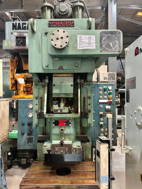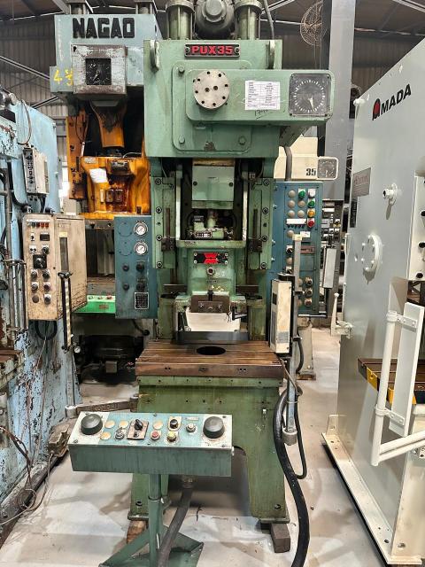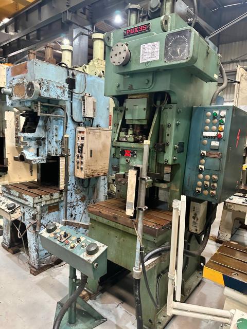 SPECIFICATION | Cap : 35Tons Stroke : 110mm Die Height : 250mm Adjustment : 55mm SPM : 35~60 Slide : 350 x 300mm Bolster : 700 x 400mm | |||