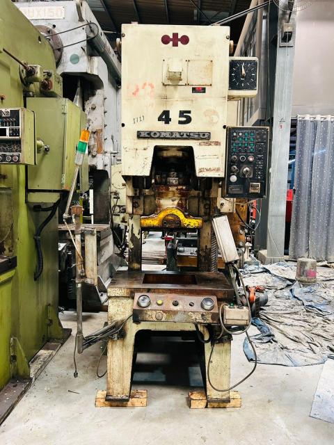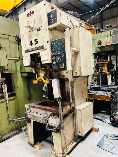 SPECIFICATION | Cap : 45Tons Stroke : 100mm Die Height : 250mm Adjustment : 60mm SPM : 50 Slide : 400x 300mm Bolster : 800 x 450mm | |||