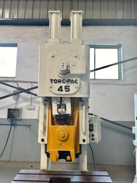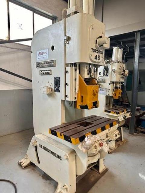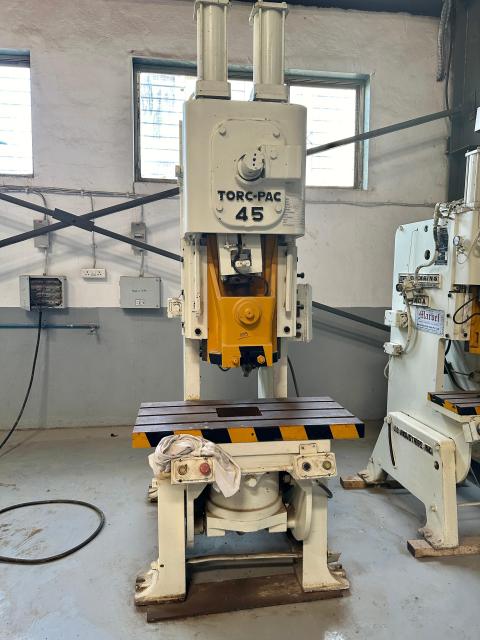 SPECIFICATION | Cap : 45Tons Stroke : 120mm Die Height : 240mm Adjustment : 65mm SPM : 50 Slide : 230 x 230mm Bolster : 1000 x 460mm | |||