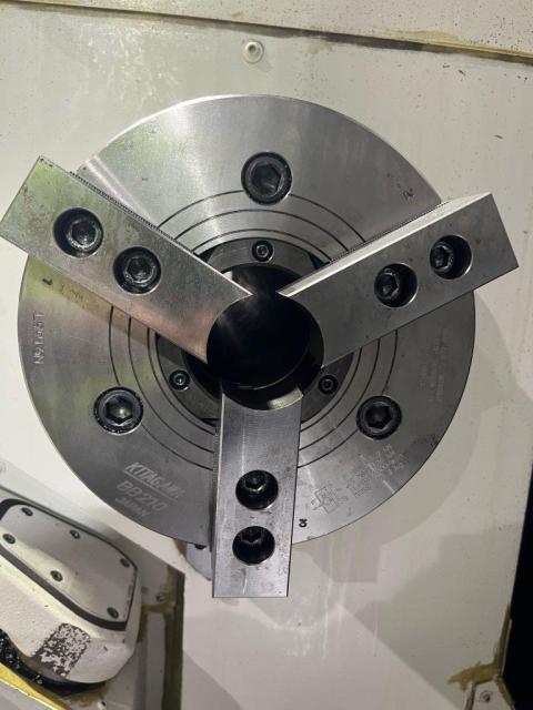 SPECIFICATION | 5-axis / 7-axis CNC Twin Spindle Turning and Milling center Okuma Multus U3000 1SW 1500 Year of manufacture 2021 CNC control OSP P300SA IGF-D Swing diameter over slide 650 mm Turning length 1500 mm Main spindle: Bar capacity 81 mm Spindle drive motor 15/22 kW Spindle speeds up to 4200 rpm Chuck diameter 250 mm C axis 0.0001° Counter spindle: Bar capacity 81 mm Spindle drive motor 15/22 kW Spindle speeds up to 4200 rpm Chuck diameter 250 mm C axis 0.0001° Tool support: Single tool carrier in the work area Tool for turning (L) and milling (M) CAPTO C6 tool holder Tool drive motor (milling/M) 19/25 KW Tool speeds (milling/M) 50 - 12000 rpm Tool magazine and automatic tool changer Tool positions - 80 times Axis/travel paths: X facing travel 645 mm Z longitudinal travel 1600 mm Y vertical travel (off-center) 250 mm B Swivel range 240° (0.0001°) C1 (spindle left) 360° / 0.0001° C2 (spindle right) 360° / 0.0001° W Counter spindle longitudinal travel 1594 mm 659 hours / 355 spindle running hours The machine is basically like new Complex complete processing at high speed for small to medium batch sizes: The Okuma MULTUS combines the advantages of lathes and vertical centers. For optimal stability and damping, all linear guides are equipped with cylindrical rollers. The Thermo-Friendly concept ensures high dimensional stability - even when the ambient temperature changes. This MULTUS U3000 is a multitasking machine with automatic tool changer and counter spindle. This 10-inch feed class machine has a wide range of machining features and is the embodiment of power, speed and process flexibility. With this machine you can do the work in one setup and with free tools in the ATC. The MULTUS U3000 has a B-axis range of 240° with a 12,000 rpm H1 milling spindle with dual function (L/M). The H1 dual function spindle head uses CAPTO C6 tools and has a high performance 25kW milling motor spindle. The H1 turret features a 0.001 degree B-axis, provided by a moving column Y-axis feed, enabling powerful Y-axis machining over a 250mm range. Both the left and right spindles are equipped with a fully contoured C-axis. Thanks to the OSP-P300 control, familiar programming methods from the lathe and machining center disciplines can be easily combined, so that advanced functions such as the “Collision Avoidance System” are standard. Proposal Number L-4890 | |||