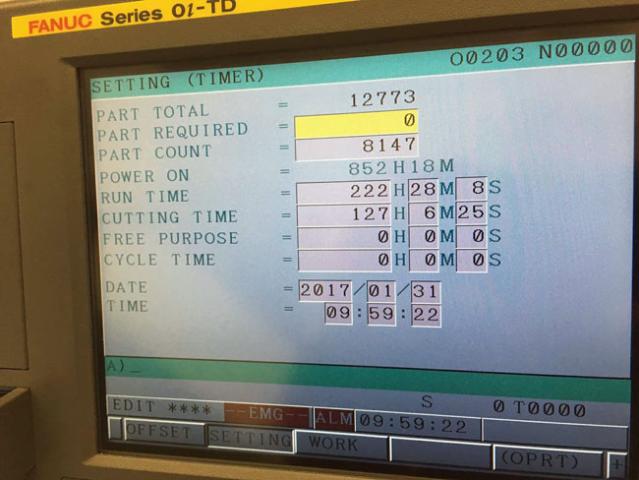 SPECIFICATION | Age (Approximate) ........ 2015 Turning Diameter: ......... 13.78"/8.07" X Axis Turning Length: ........... 22.63"/25.59 Z Axis Spindle Bore: ............. 3.07" Spindle Nose: ............. 3J Collet Spindle Speeds: ........... 35-3500 RPM Spindle Horse Power: ...... 20 HP Number of Turret Positions: 12 High Pressure Coolant: .... 100 PSI Control: Fanuc OiTD Equipped with G-Code and manual Oi programming Color Graphics USB Ethernet Equipped With: 10" Big Bore Hydraulic Chuck Royal 3J Collet Nose Programable Tail Stock 12 Position High Speed Turret 20 HP High Torque Dual Wound Spindle Motor 100 PSI Coolant System Oil Skimmer 4 HP AC Servo X & Y Motors "with Huge Ball Screws" The machine has less than 130 Cutting Hours. | |||