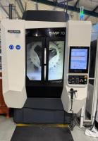 High dynamic Vertical Drill-Tap centre / 5-Axis Vertical CNC Machining Centre DMG Mori DMP 70 With best milling performance New in 2023 Siemens 840D solutionline 2-Axis NC Rotary Tilting Table C Axis 360° torque motor A Axis -120°/+100° Table diameter 290 mm Table load max. 100 kg X = 700 mm Y = 420 mm Z = 380 mm Feeds and rapids X,Y,Z up to 60000 mm/min. Spindle taper BBT 30 BIG PLUS Spindle speeds max. 24000 rpm Spindle motor drive 4/6/20 KW Spindle torque max. 40 Nm 25 Tool magazine positions Equipped with: Rotary joint with 4 channels Software package Job Shop and Sinumerik MDynamics 5-axis Data memory extension 6 GB flash card ShopMill Chip conveyor Paper filter for coolant Through-spindle coolant 40 bar Workpiece measuring system BLUM TC52 BLUM Z-Nano for tool length and tool breakage detection 4-color signal tower Direct absolute measuring system X, Y, Z with 0.01 µm resolution 600-liter tank Oil mist extraction unit 3D quickset option for tool compensation and kinematic accuracy Automation interface package Hand wheel Machine Data Connector & NET service options Optionally available a Pallet handling system System 3R Workpartner 1 + Cell …And much more! New spindle with under 100 hours! Proposal Number MV-6489